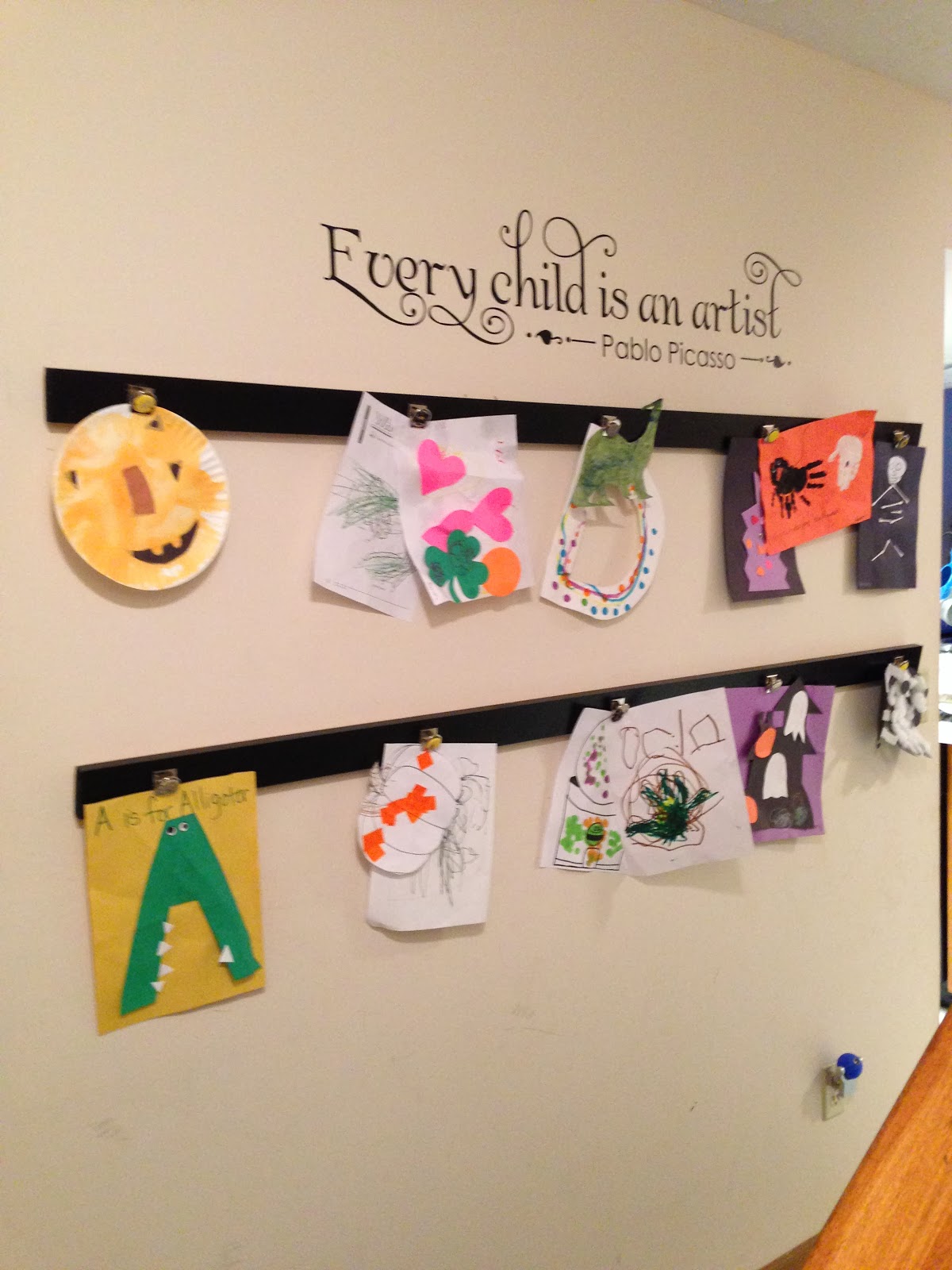 When my daughter started pre-school this fall I was thrilled, and even more so when she started learning her letters and doing amazing crafts and paintings- I was thrilled right up until the point that my refrigerator was full and things were falling off every time we opened it. Yikes! She was so excited to bring her projects home and show them off that I didn't want them to have to be put in an old box in the basement a week later, simply because we didn't have room for them. There HAD to be a better solution, right?
